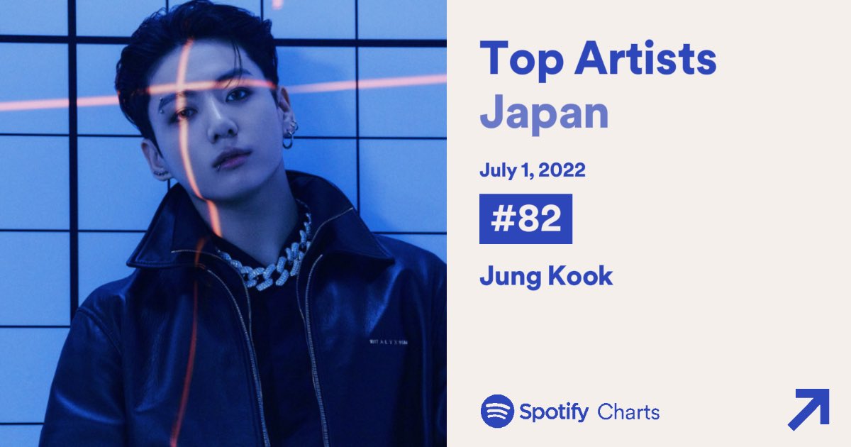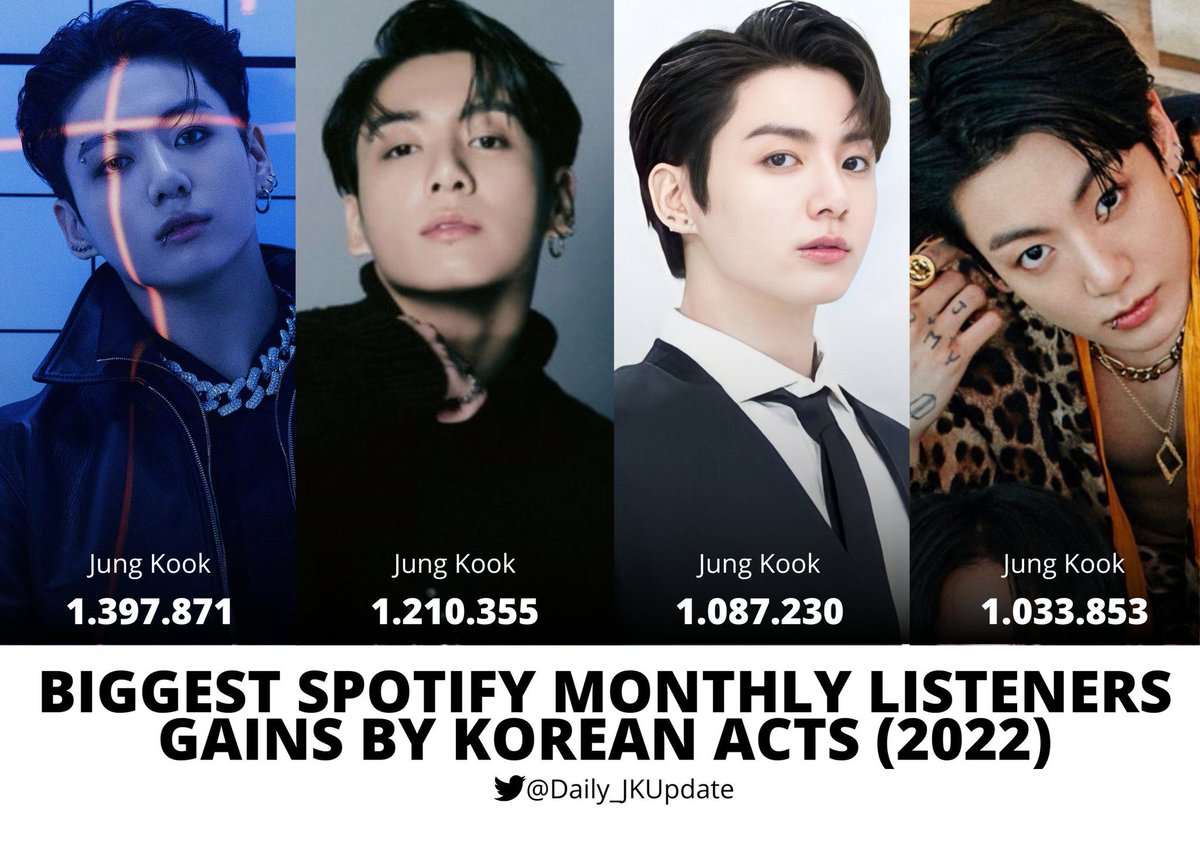 JUNGKOOK reached a new peak 8,096,837 (+ 1,210,355) of Monthly Listeners on Spotify✨
