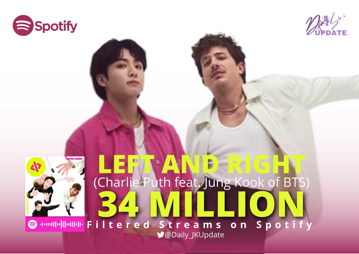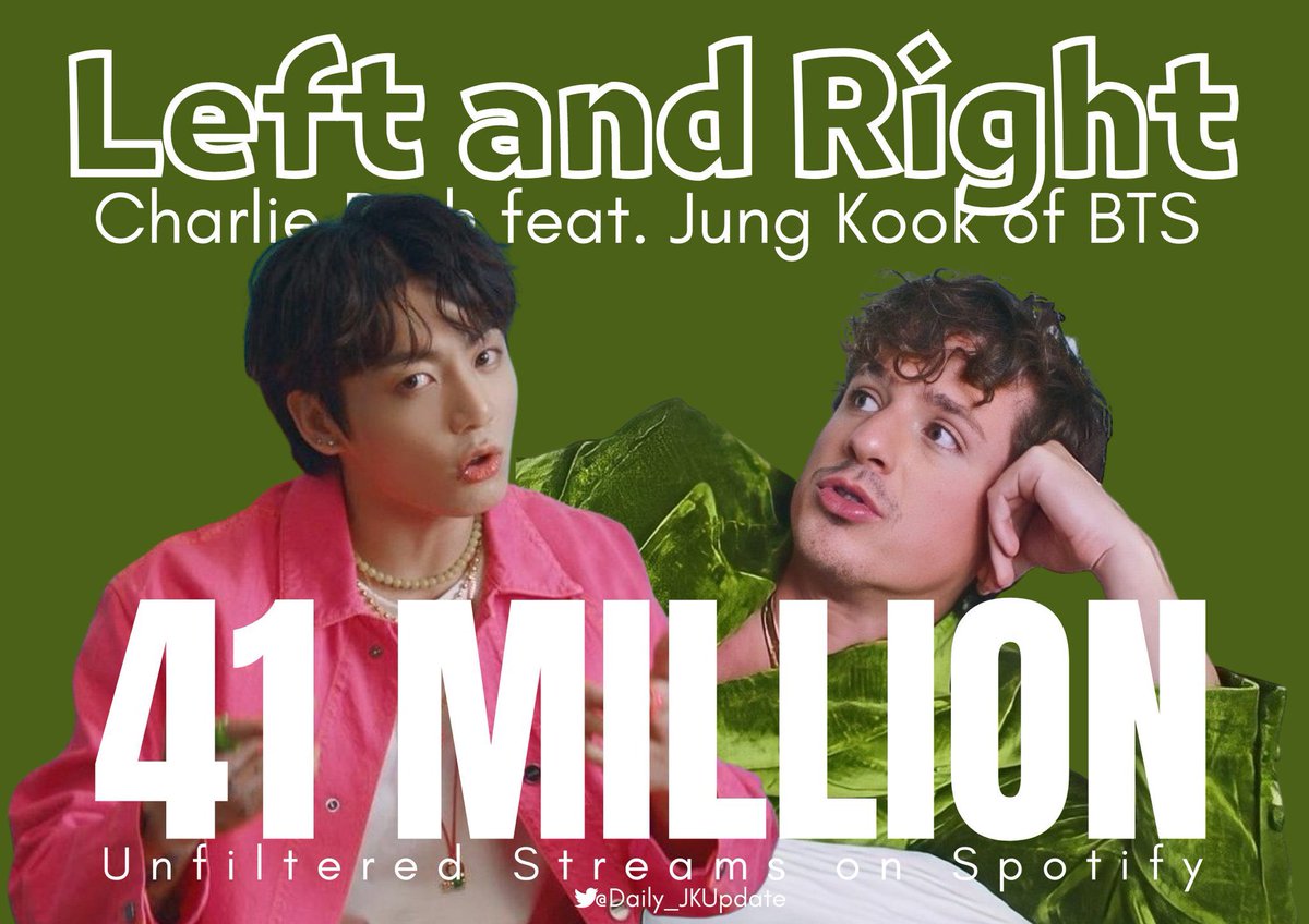 📊 “Left and Right” feat Jungkook has surpassed 41 million unfiltered Spotify streams in just 8 days!