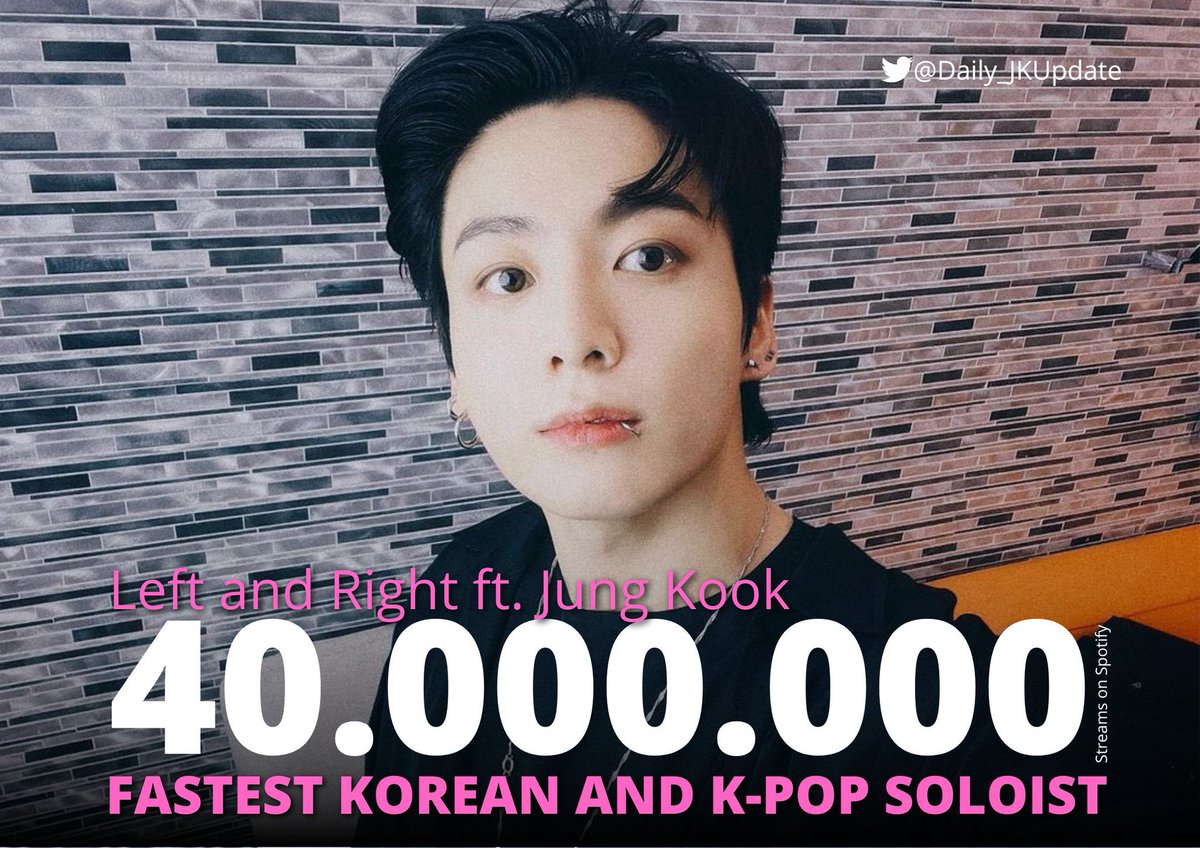 JUNGKOOK holds the record for the Fastest Song by Korean/Kpop Soloist to reach 40M streams on Spotify: