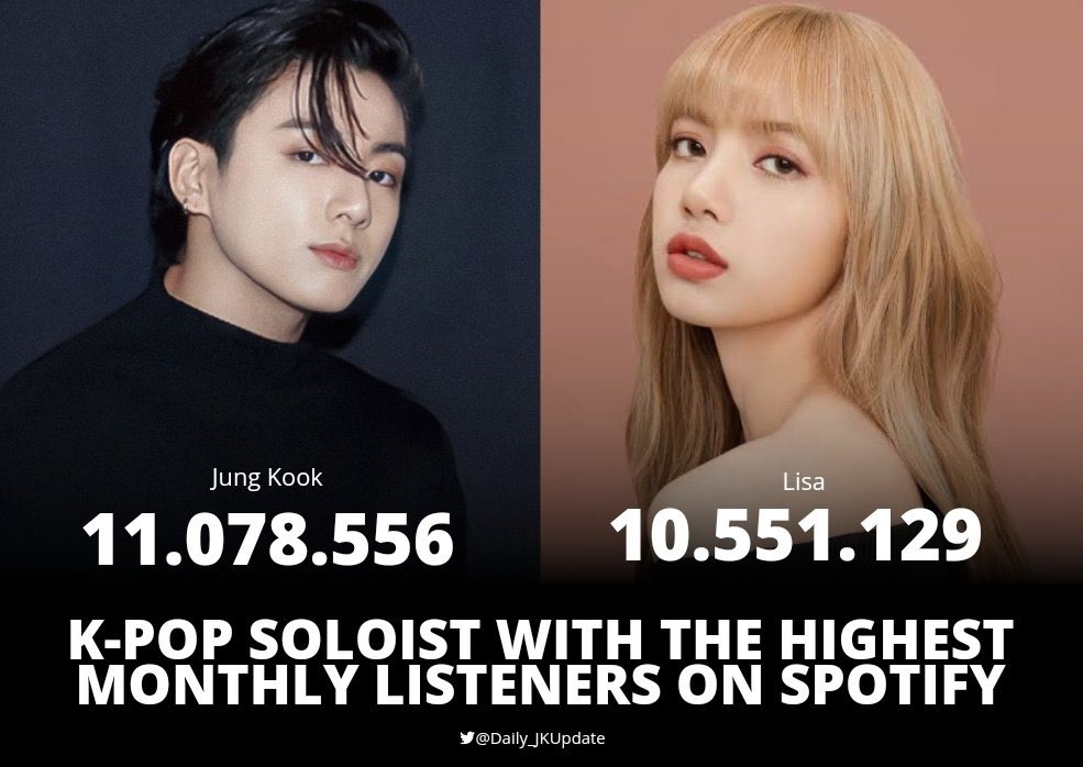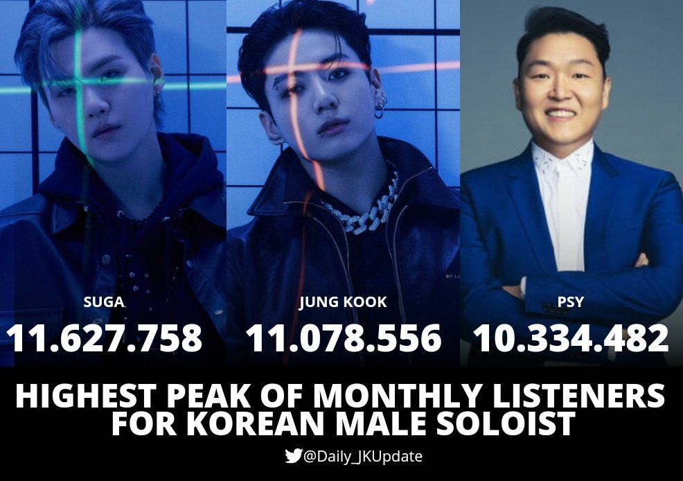 📊 Jungkook is now the 2nd Korean Male Soloist with the Highest Peak of Monthly Listeners on Spotify after surpassing PSY.