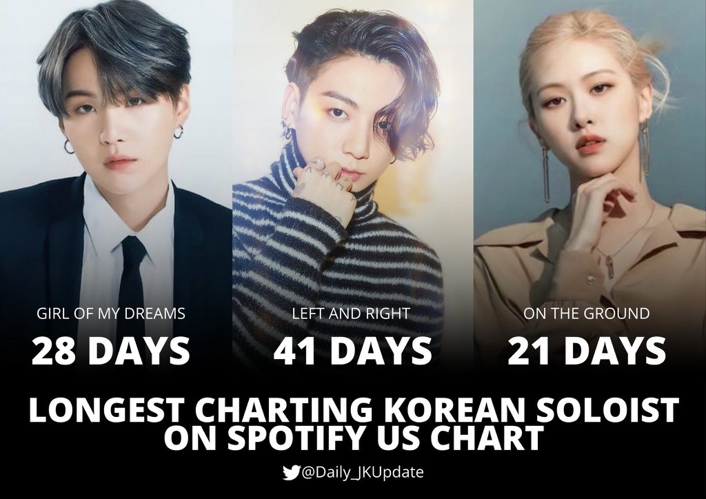 📊 JUNGKOOK extends his record as the LONGEST charting Korean Soloist on Spotify US Chart.