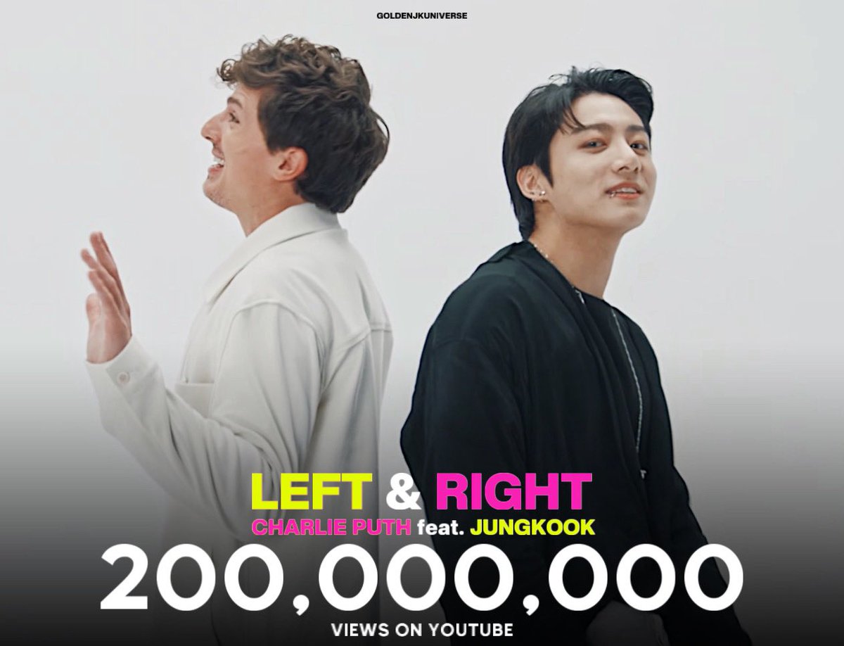 “Left and Right” has surpassed 200M views on YouTube. This marks Jungkook’s first solo MV to reach this milestone. #LeftandRight200M