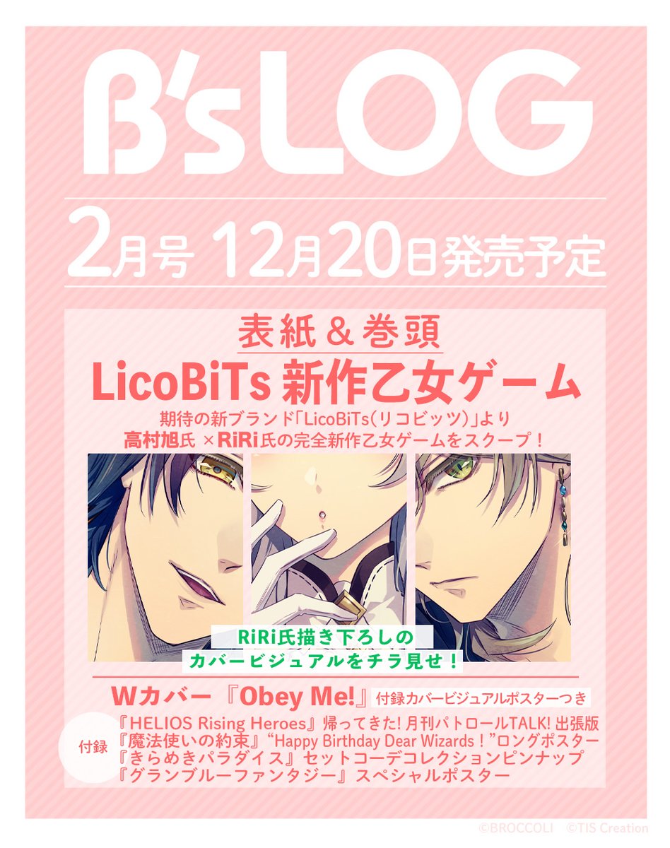 完全新作乙女ゲーム(ディレクター:高村旭、イラスト:RiRi、シナリオ:かずら林檎)の情報は12/20(火)発売のB's-LOG様にて本格展開スタートです!