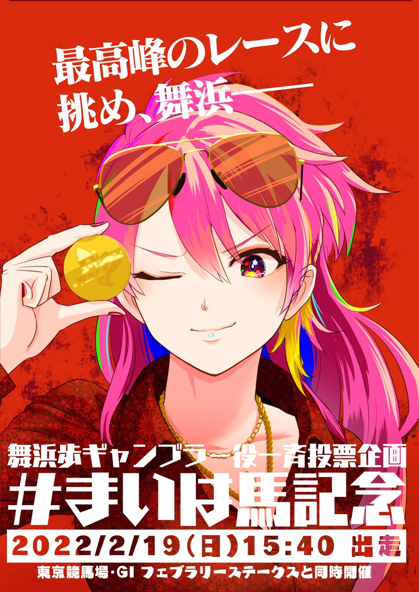ギャンブラー役を誰にも渡さないために、ここらで「勝負」決めませんか? 舞浜歩ギャンブラー役一斉投票企画 「第3回 #まいは馬記念 」 2022/2/19(日)15時40分開始! 中央競馬最高位のGI レース・フェブラリーステークスに合わせて開催! テレビやラジオで観戦しながら投票しよう! #MC舞浜歩