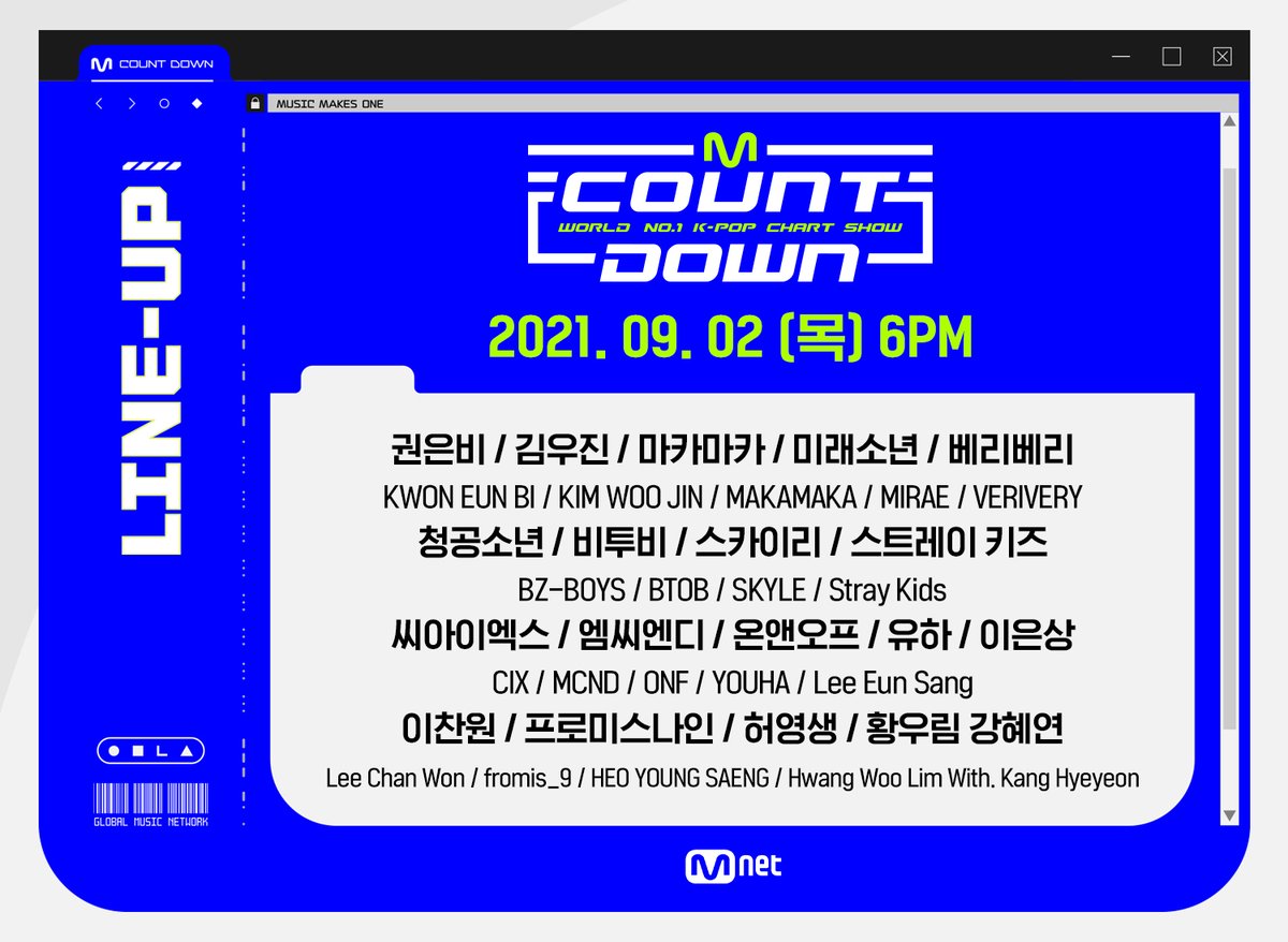 권은비/김우진/마카마카/미래소년/VERIVERY/BZ-BOYS(청공소년)/비투비/스카이리/Stray Kids/CIX/MCND/온앤오프 (ONF)/유하/이은상/이찬원/프로미스나인/허영생/황우림 강혜연