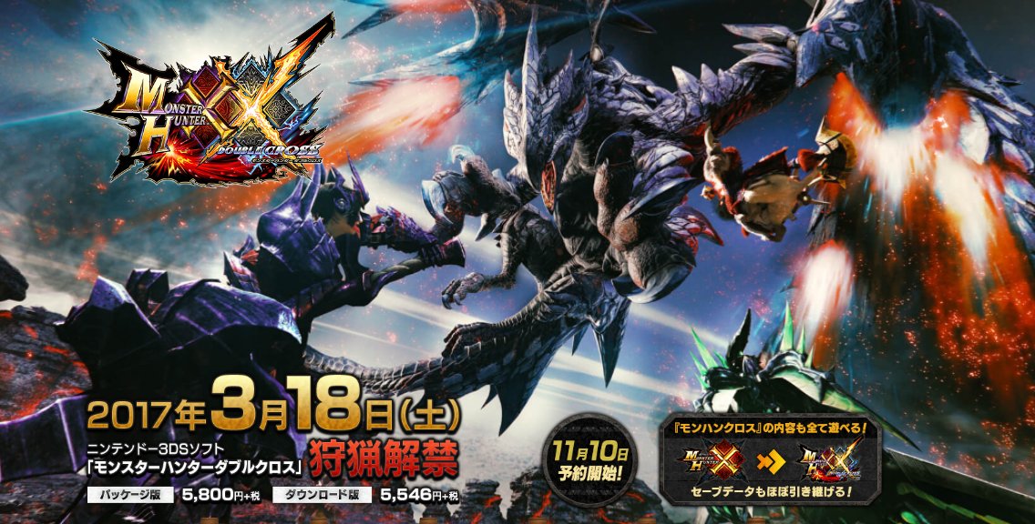 わたし、カティからお知らせです!2017年3月18日(土)発売『モンスターハンターダブルクロス』は11月10日木曜日から予約を開始しますよ~。もう間もなくですね!bit.ly/2f8JvCG #MHXX