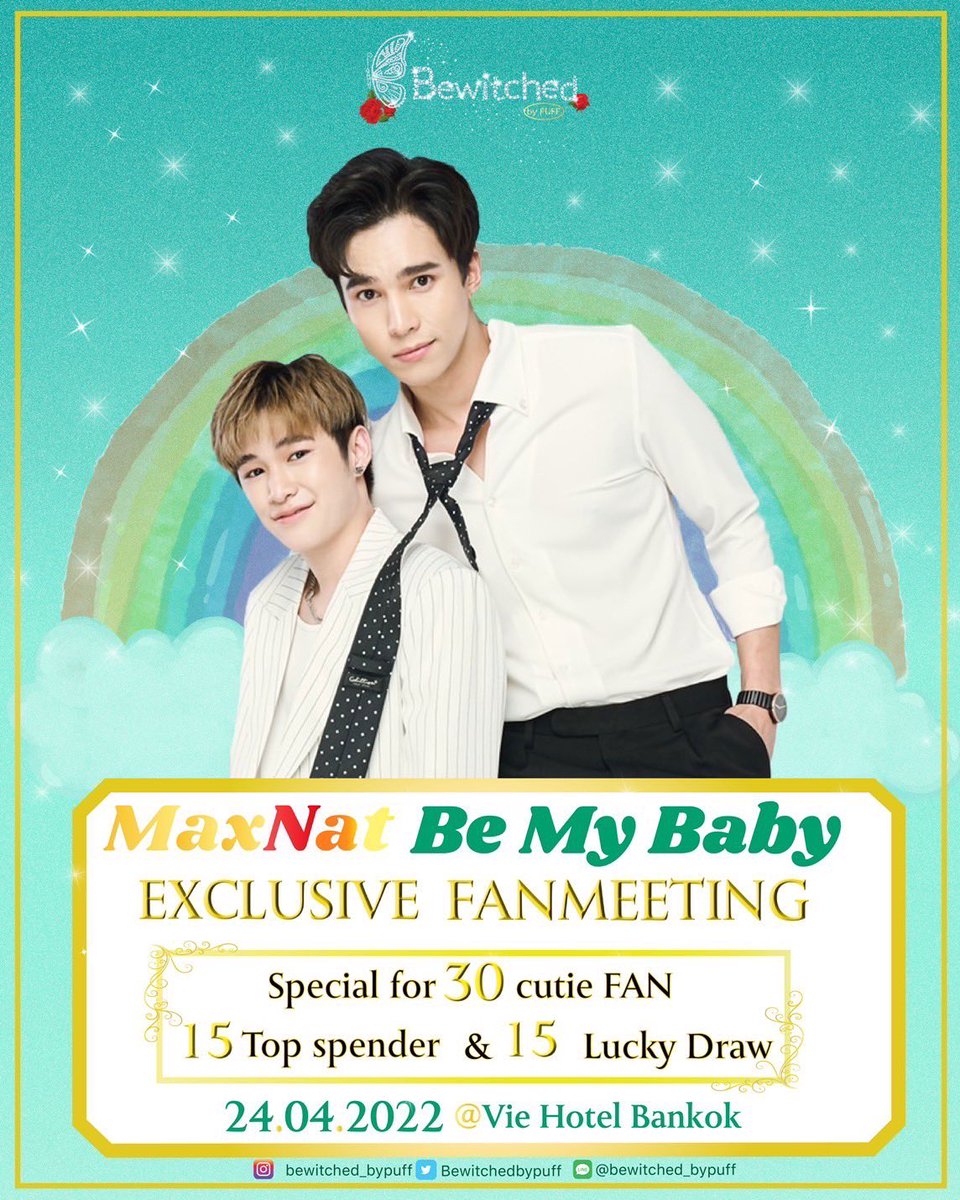 24เม.ย บ่ายโมง 30cutie fan ของพวกเรามาร่วมสร้างความทรงจำอบอุ่นใจดีๆด้วยกัน ในงาน #MaxNatBeMyBaby by Bewitched ด้วยกันนะครับ ติดตามรายละเอียดได้ทาง