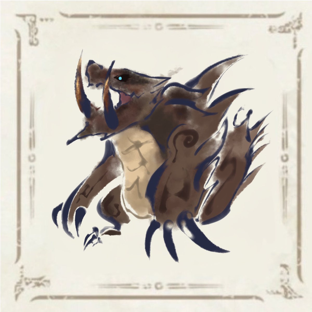 筆ペンで怒り喰らうイビルジョー描きました‼︎