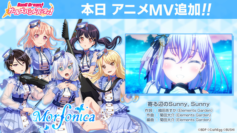 アニメ「BanG Dream! Morfonication」の劇中歌でもある、Morfonicaの新楽曲『寄る辺のSunny, Sunny』を追加いたしました🦋✨