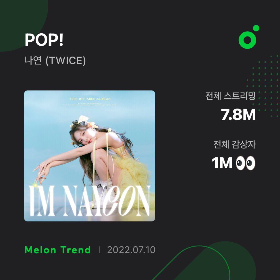 #NAYEON’s "POP!" has surpassed 1 MILLION Unique Listeners on MelOn! 💫