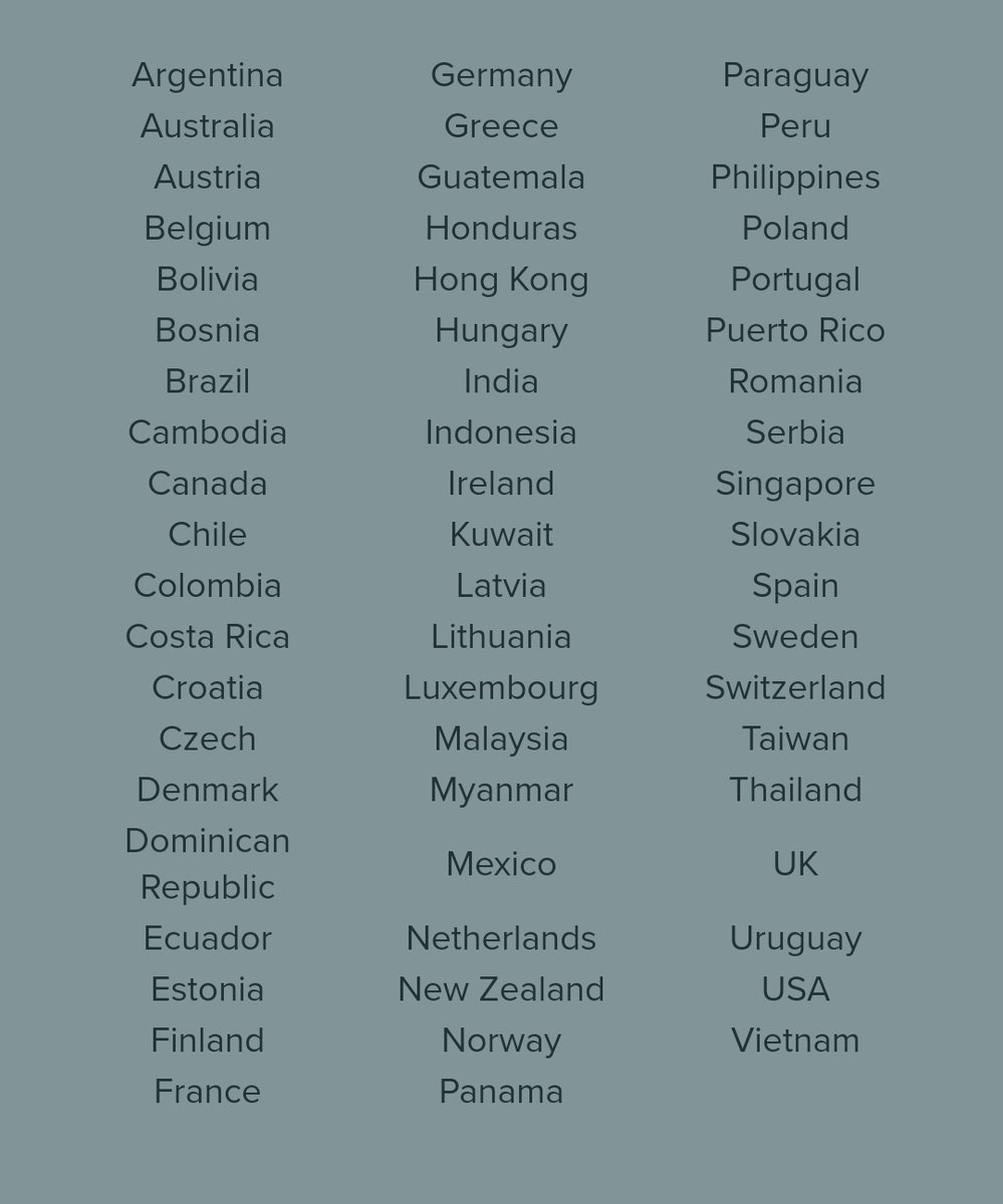 LIST OF COUNTRIES 👇 Is your country included? 🤔