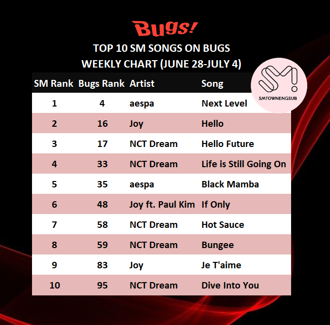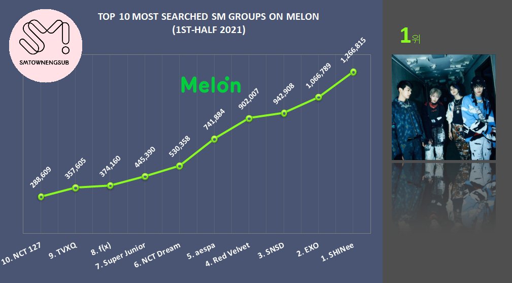 Top 10 Most Searched SM Groups on Melon (2021 1st-Half)