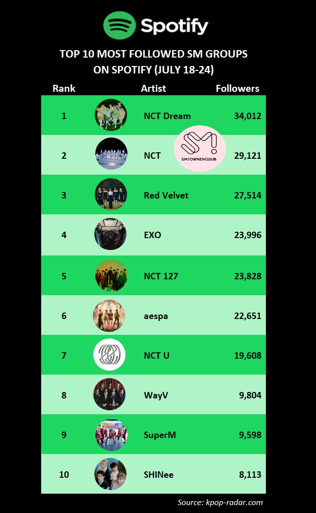 Top 10 Most Searched SM Groups on Melon (July 18-24)