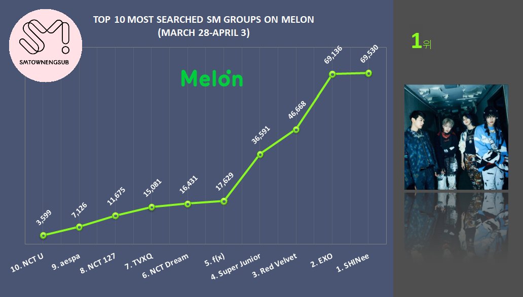 Top 10 Most Searched SM Groups on Melon (Mar.28-Apr.3)