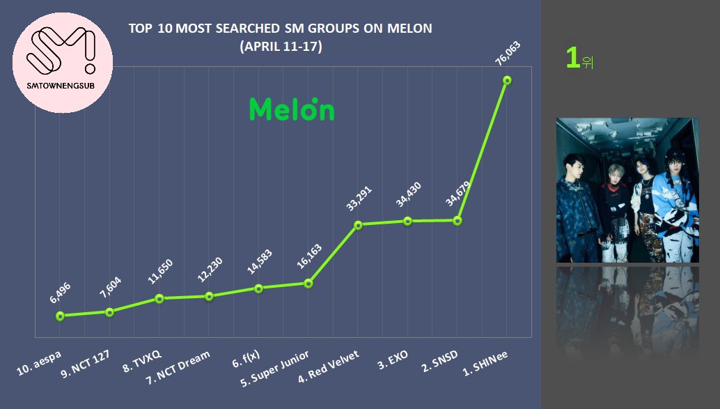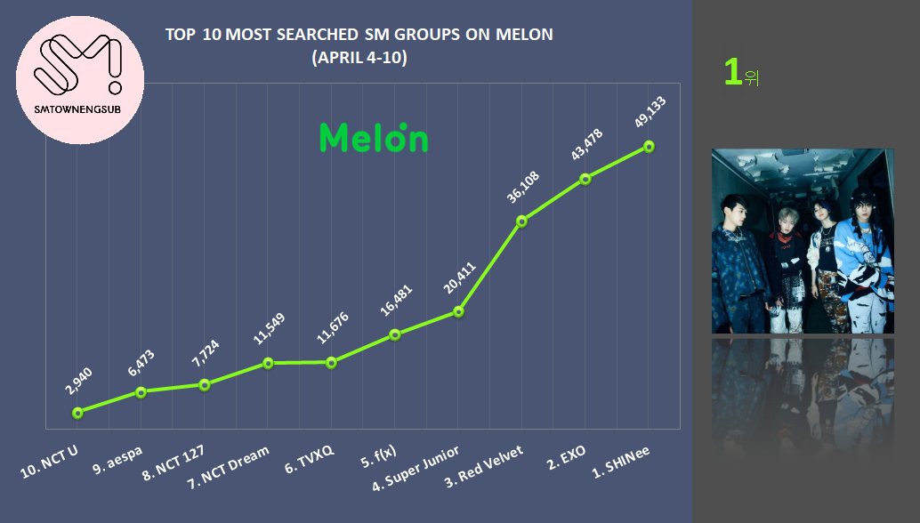 Top 10 Most Searched SM Groups on Melon (Apr.4-10)