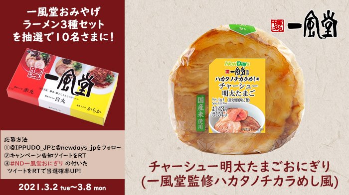 一風堂公式Twitter( @IPPUDO_JP )とNewDays公式Twitter( @newdays_jp )フォロー&対象ツイートをRT🔁