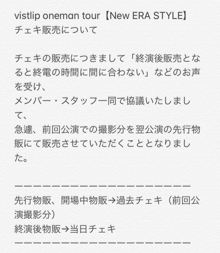 vistlip oneman tour【New ERA STYLE】チェキ販売について