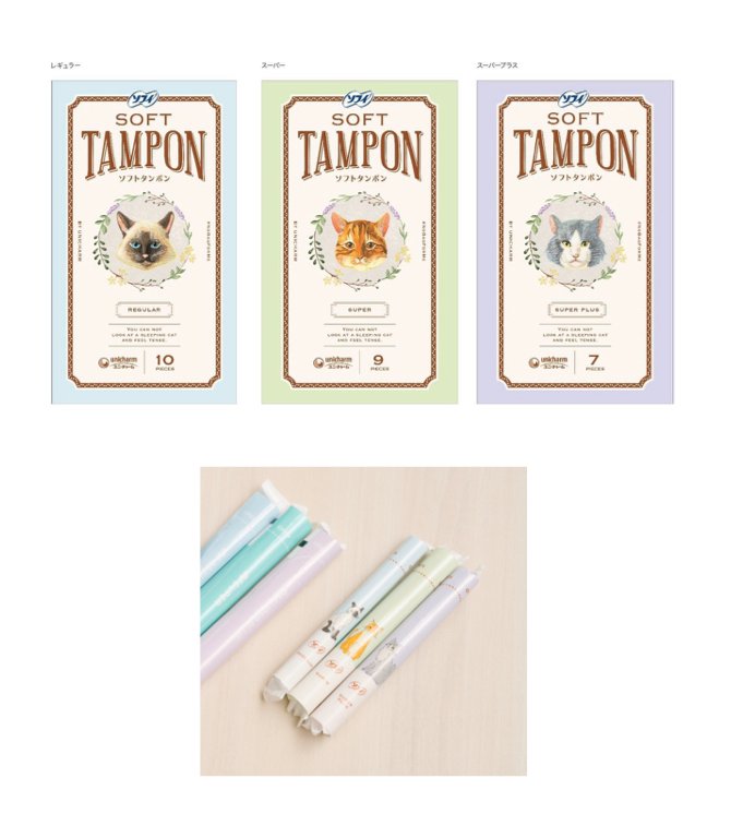 生理中も、猫のようにのんびり、ゆったり過ごしてもらいたいという思いを込めました。タンポン初心者にも手にとりやすいように、柔らかな色合いに仕立てています。