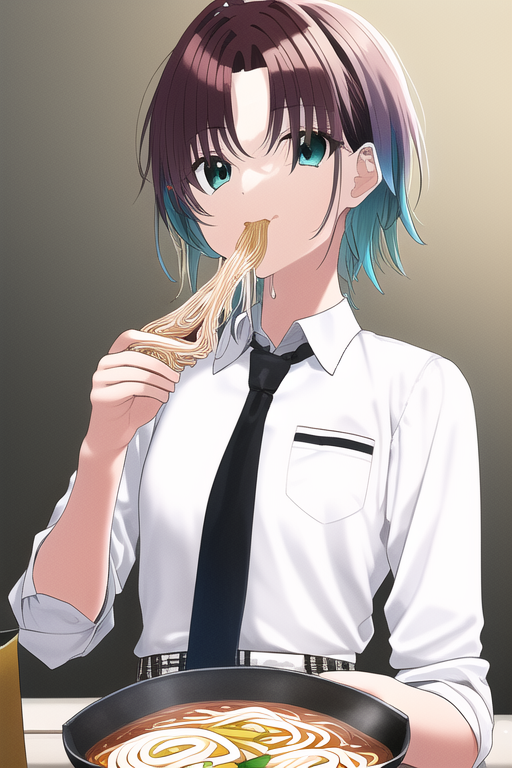 「ラーメン食べるのが下手な樋口円香」がミーム化してるんでこの流れに身を任せよう #NovelAI #NovelAIDiffusion