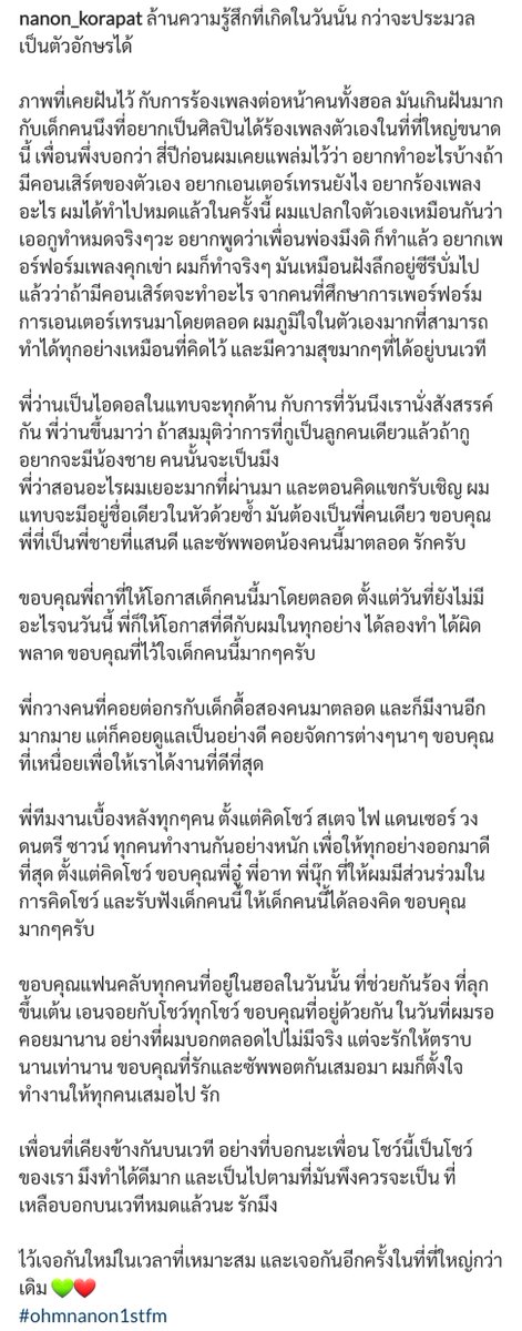 🐶 I still can't move on (from #OhmNanon1stFM). For me, it's a 100% work. I never thought I would be able to do it. But I had Nanon by my side and went through it together. There're many moments happened which I didn't tell you but I felt like 'oh~ it's fantastic'