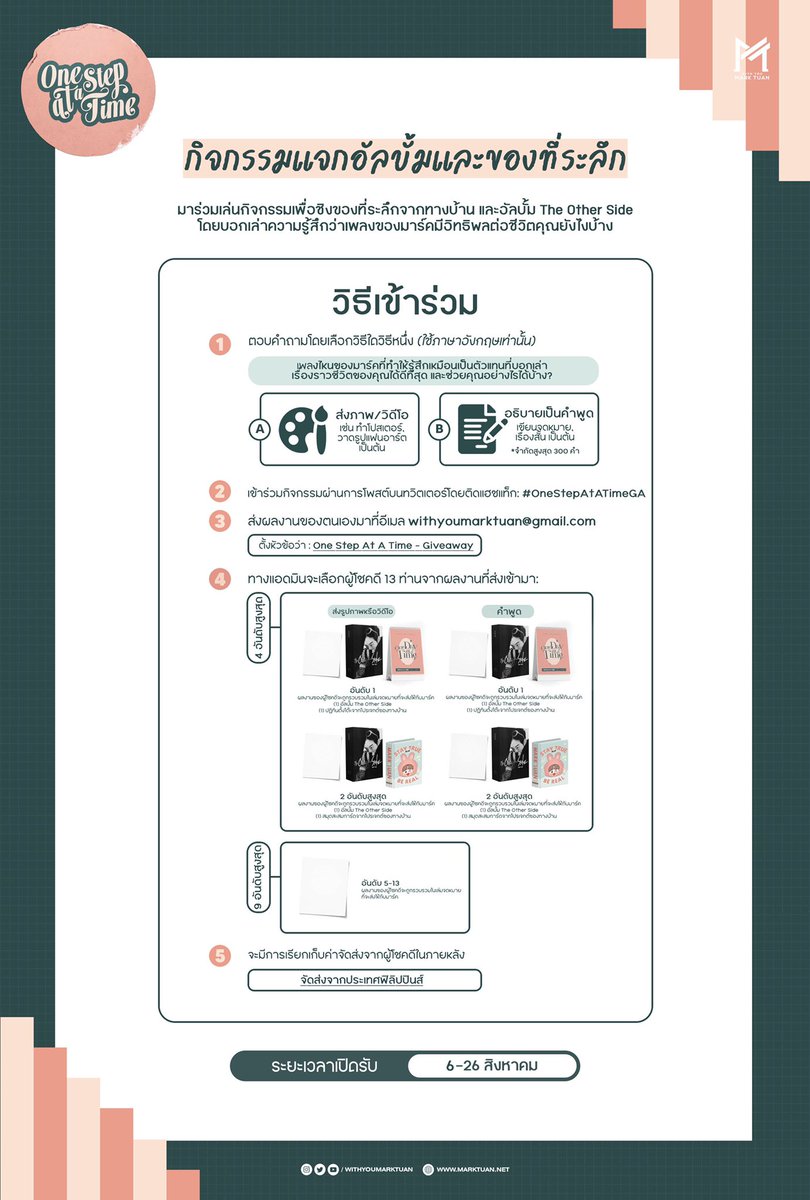 ทางบ้านมีแจกอัลบั้ม #theotherside_MarkTuan จำนวน 4 รางวัลให้กับผู้โชคดีด้วยนะคะ🤍