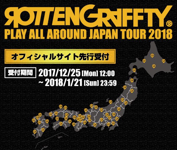 ROTTENGRAFFTY"PLAY ALL AROUND JAPAN TOUR 2018"オフィシャル先行チケットを12/25 12:00~1/21 23:59まで受付致します!