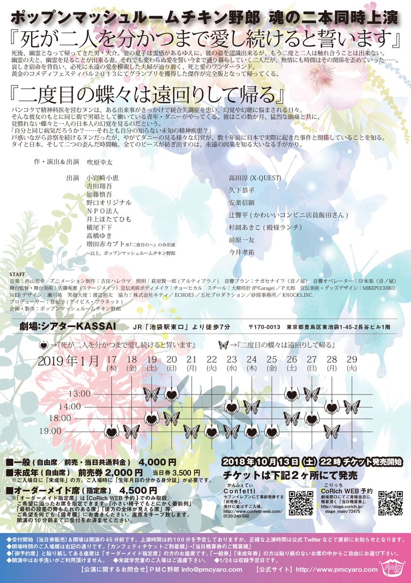 【公演詳細公開!】ポップンマッシュルームチキン野郎 魂の二本同時上演