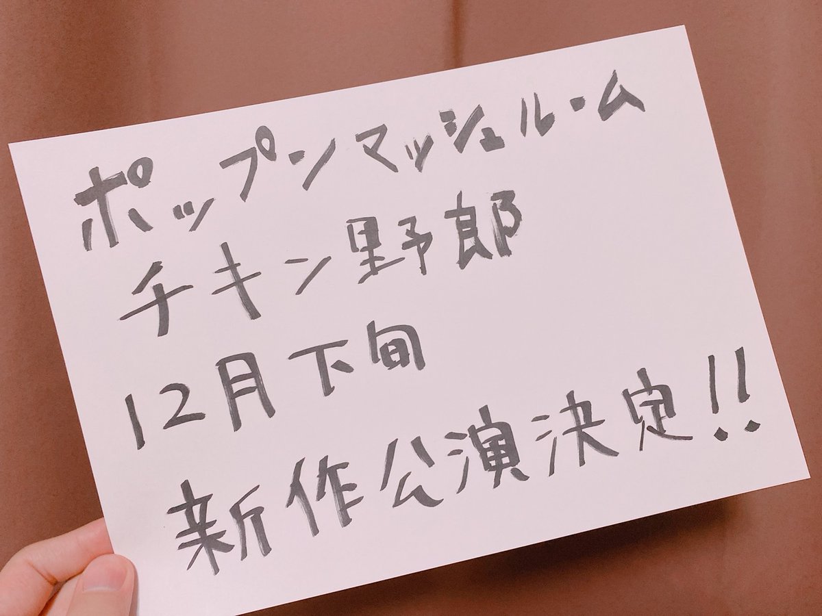 先ほど配信でも発表した通り、ポップンマッシュルームチキン野郎は今年12月、本公演を行います!ワーイ!ヤッタネ!