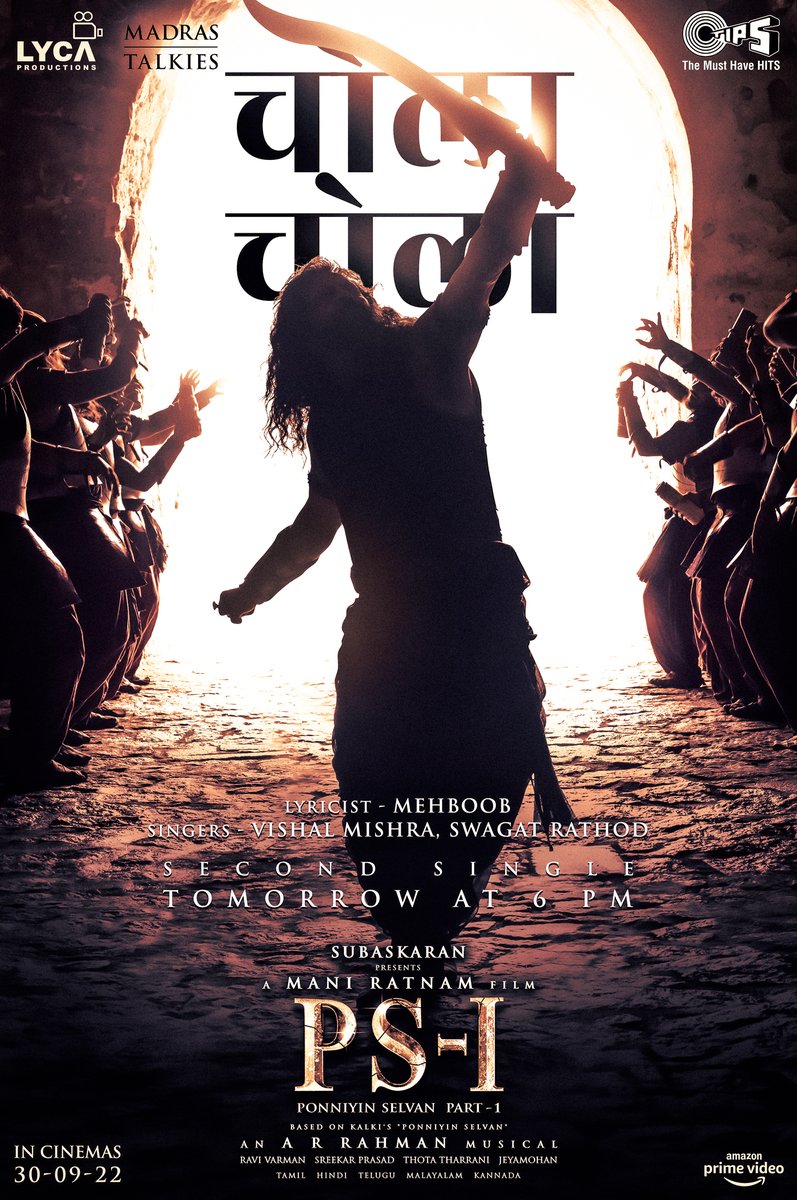 #CholaChola the next single from #PS1 releasing tomorrow at 6PM!