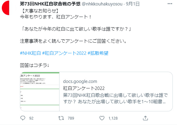 現在このような紅白に関するアンケートが出回っていますがYoutuberの方の予想アンケートであり...