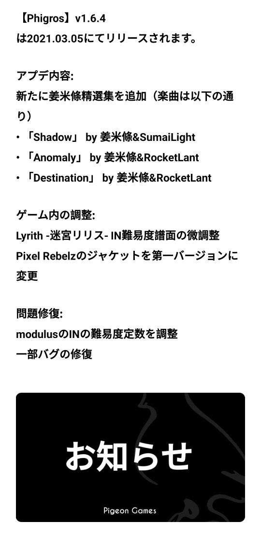 [Phigros] 1.6.4 will be updated on 2021.03.05!