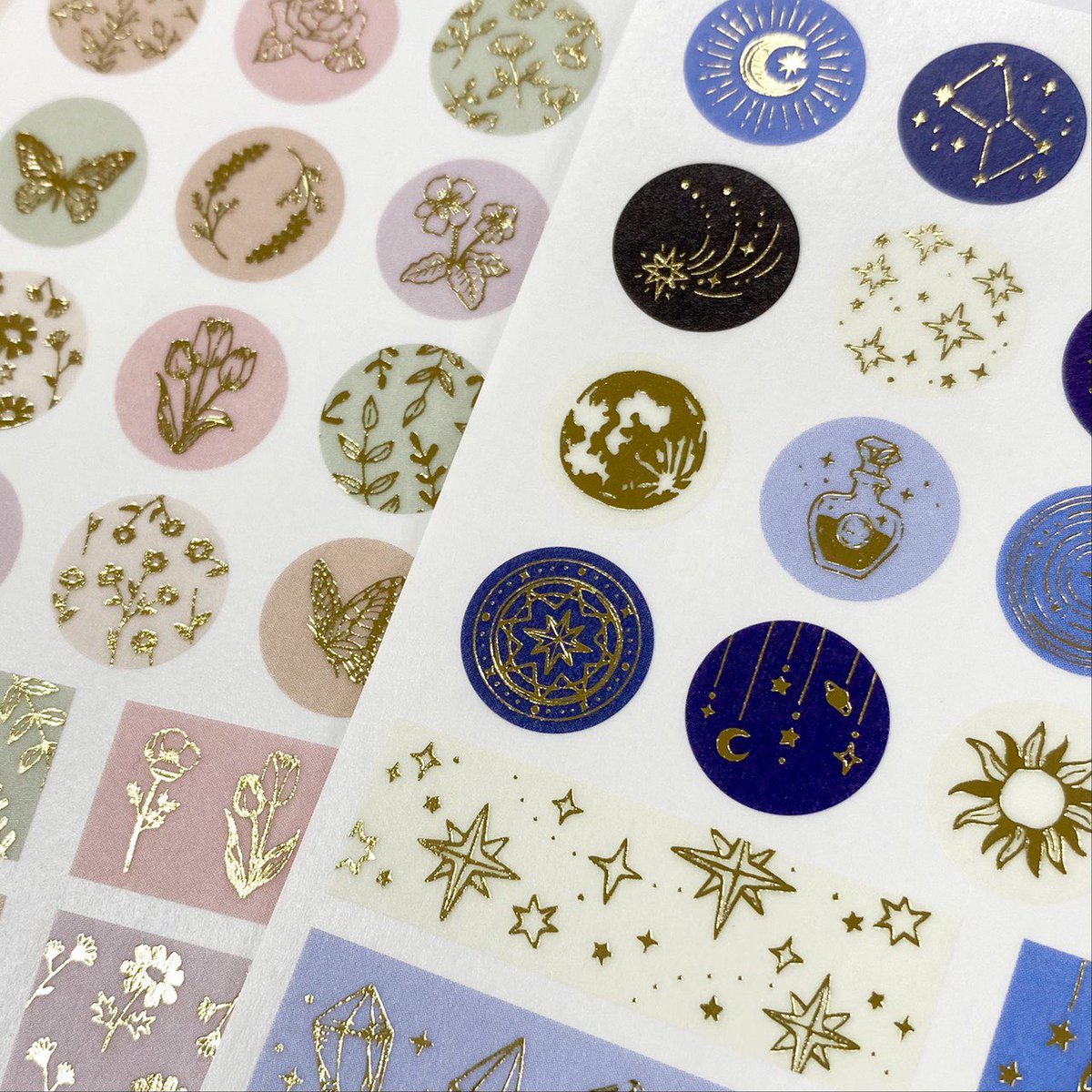 ニュアンスカラーのベース色が上品な「お花」🌼🌿と、星などのイラストがキラリと輝く「天体」🌌🌙の2柄展開です😘💫