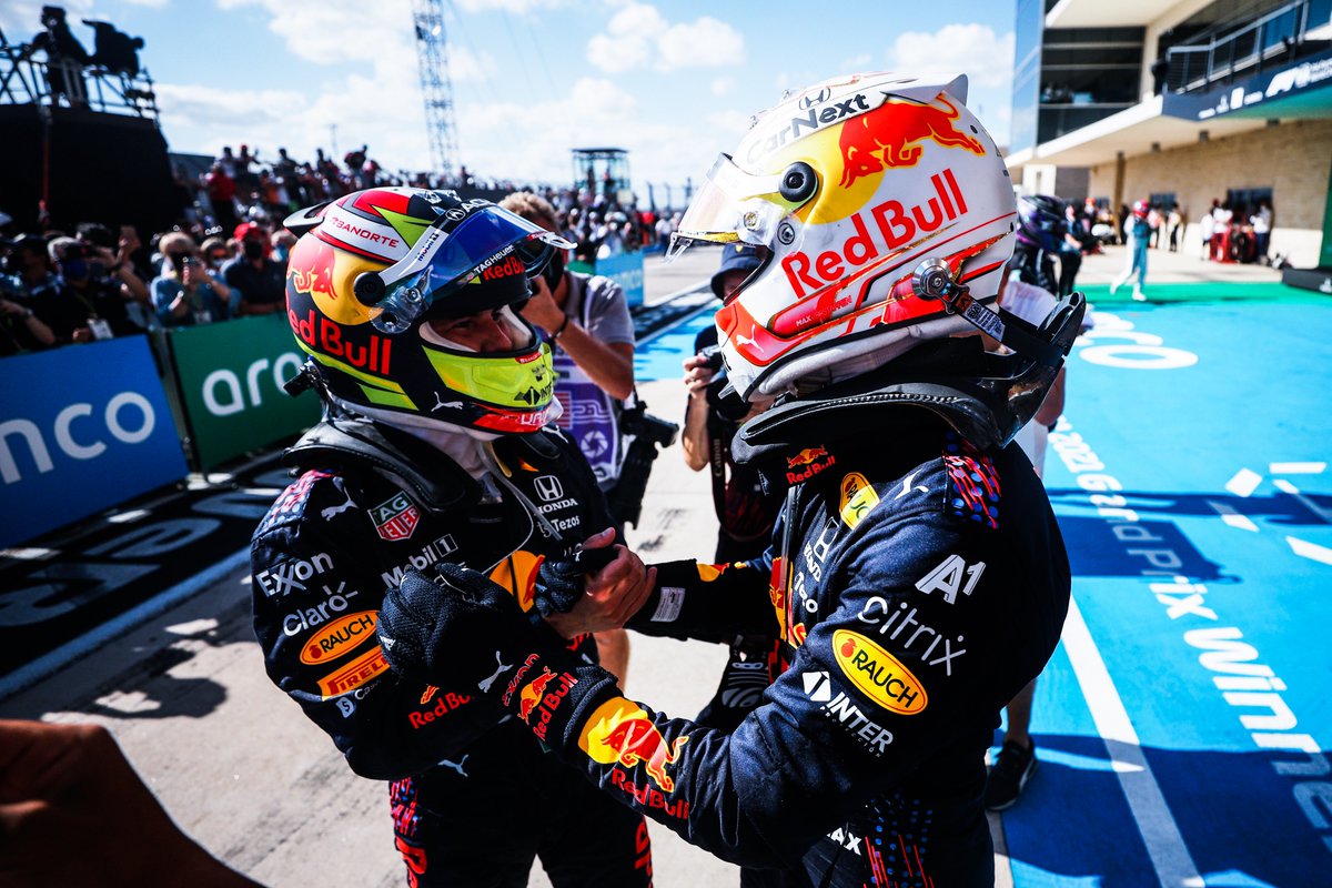 Charging Checo brings it home P3 🏆🏆 That's two double-podiums in a row for the Bulls 💪 #USGP #PoweredByHonda