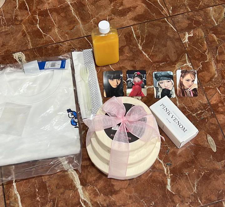 The gift for the fans consists of a three-tiered lunch box containing tofu sushi, salad, chicken, fruit, and dessert, 4 types of poka for each member, Adidas T-shirt, juice, and a mini fan.