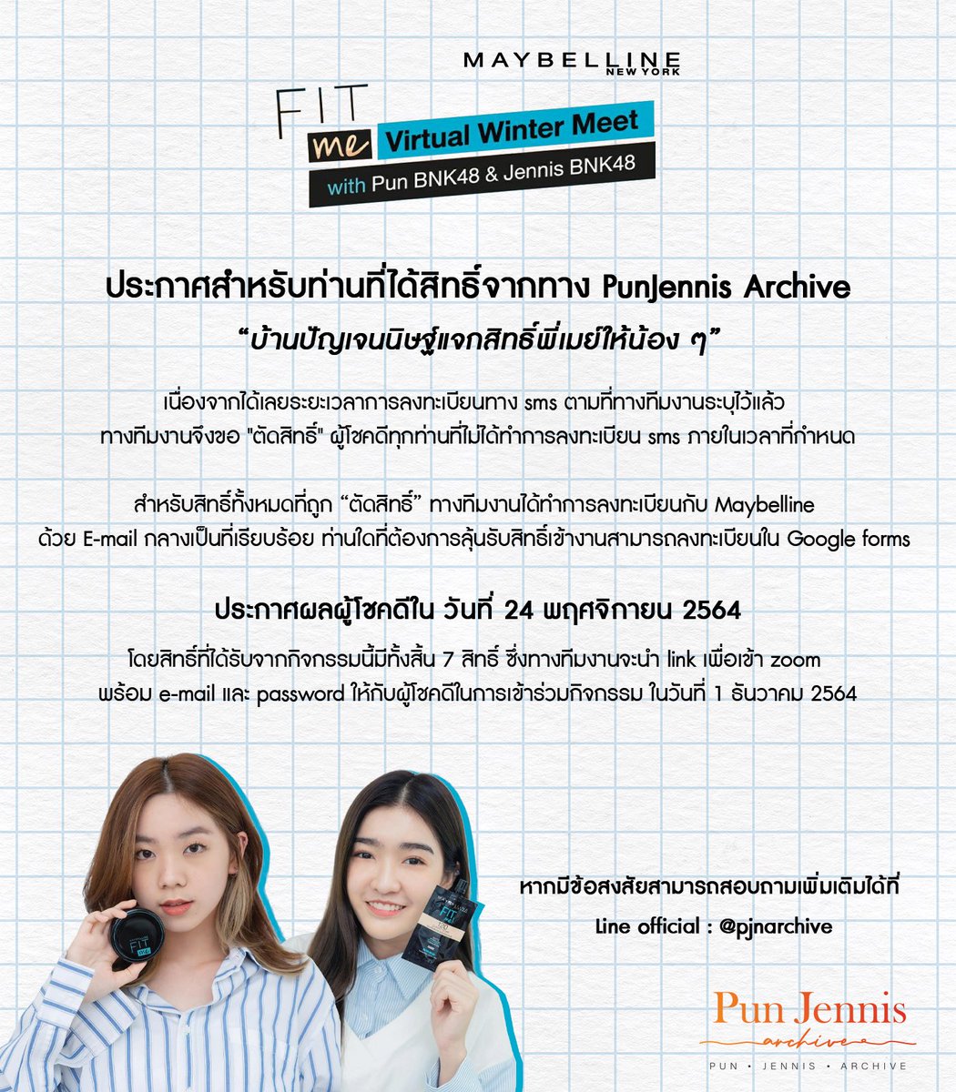 "ประกาศสำหรับท่านที่ได้สิทธิ์จากทาง 𝐏𝐮𝐧𝐉𝐞𝐧𝐧𝐢𝐬 𝐀𝐫𝐜𝐡𝐢𝐯𝐞"