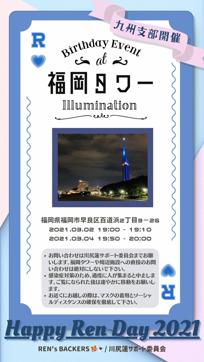 2つのお祝いの日に、蓮ちゃんの故郷・福岡のランドマークを《蓮ちゃんブルー》に染めます💙