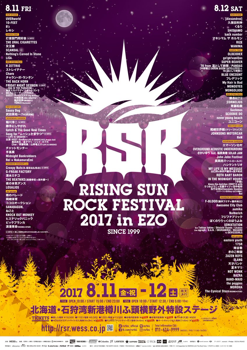【RISING SUN ROCK FESTIVAL 2017 in EZOまであと0日!】