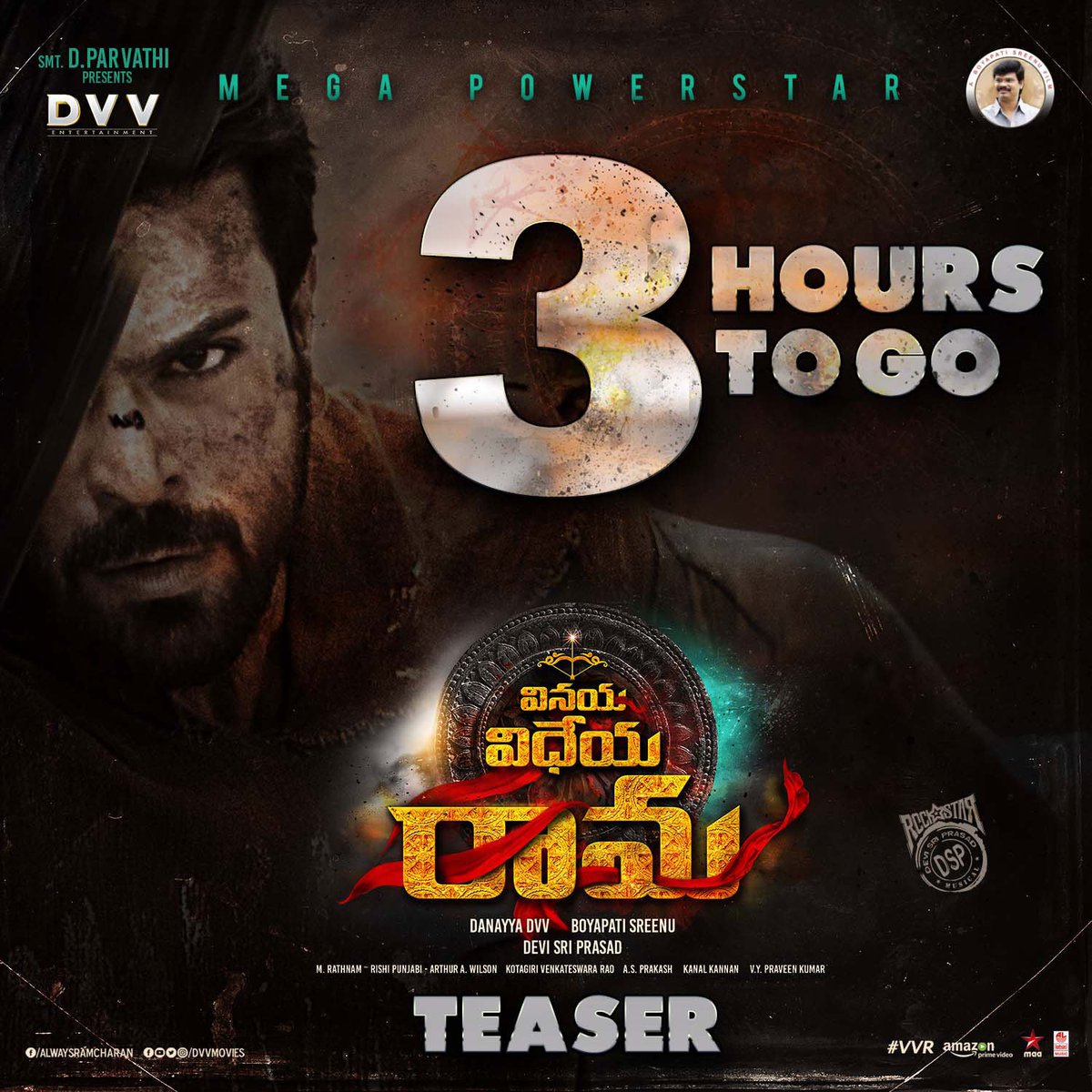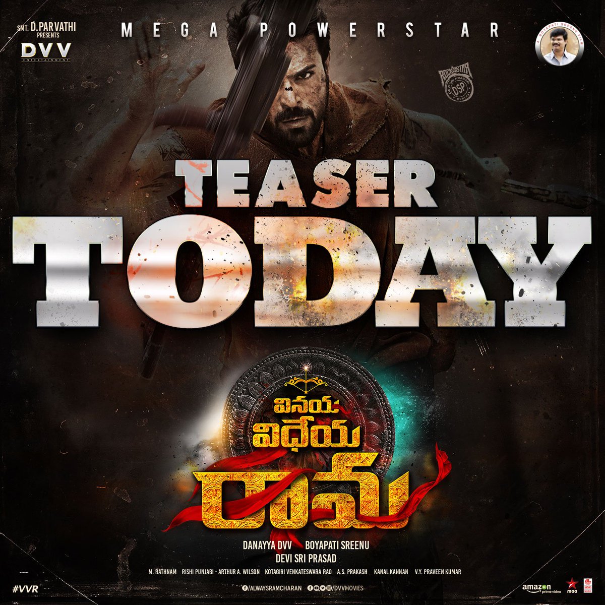 #VinayaVidheyaRama... #RamCharan @advani_kiara @vivekoberoi A Rockstar @ThisIsDSP Musical A Boyapati Sreenu Film. @DVVMovies
