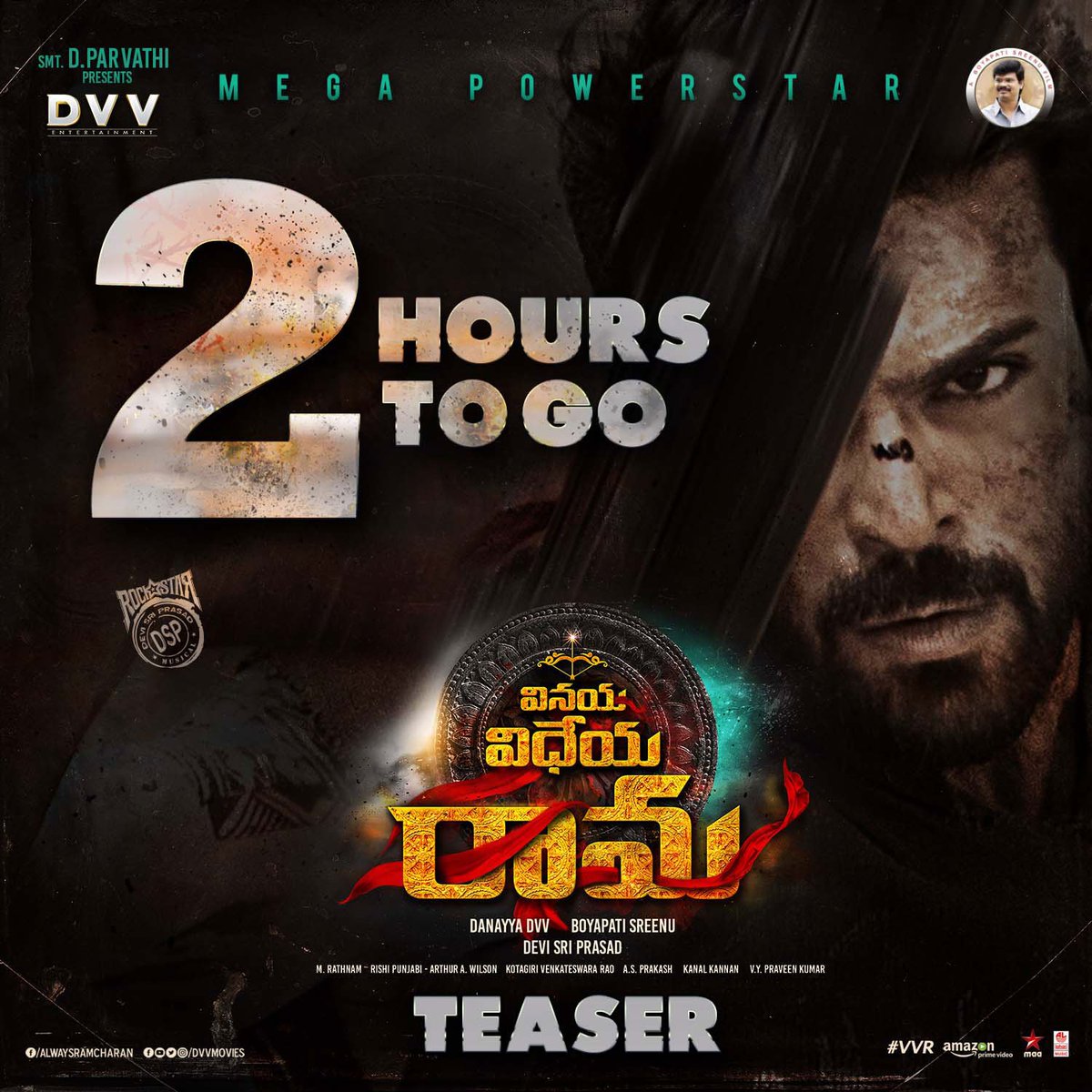 2 hours to go ! #VinayaVidheyaRamaTeaser...