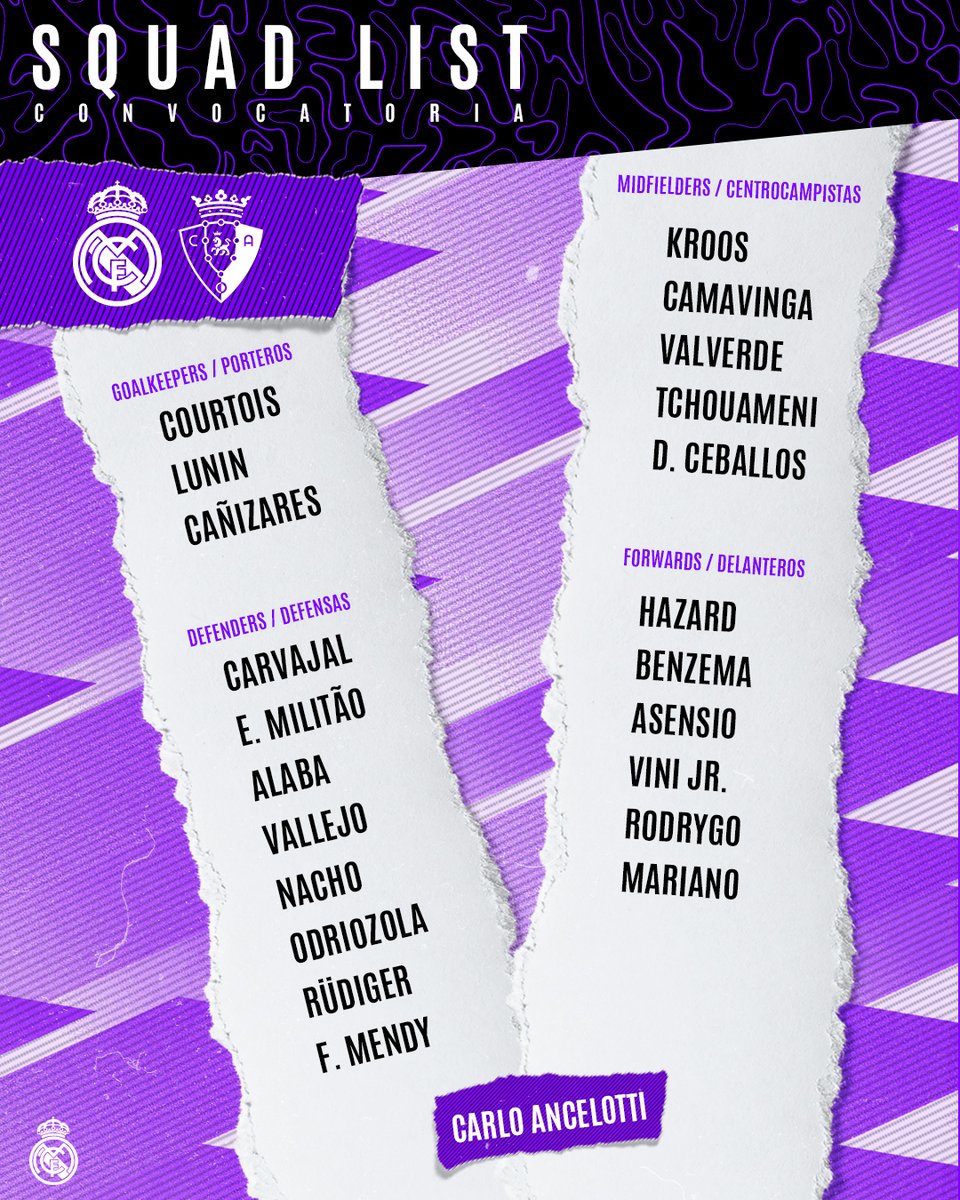 📋✅ Our squad for #RealMadridOsasuna!