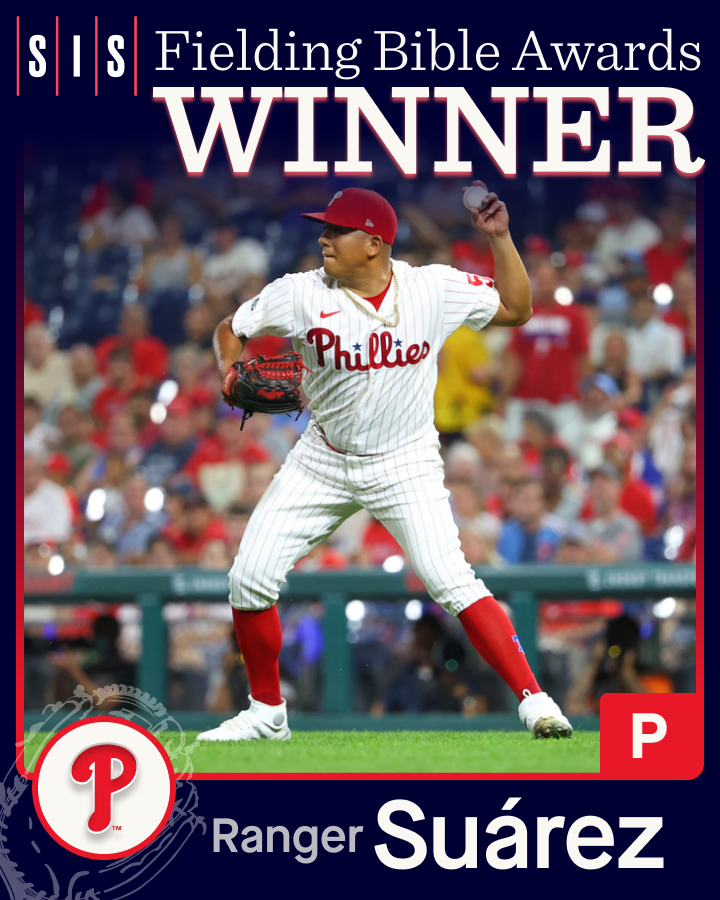 2022 Fielding Bible Awards P Winner - Ranger Suárez, @Phillies * 1st career Fielding Bible Award * Led all pitchers in Defensive Runs Saved * Did not allow a stolen base in 2022 (155 1/3 innings) * 1st Phillies P to win Fielding Bible Award #RingTheBell #SuenaLaCampana