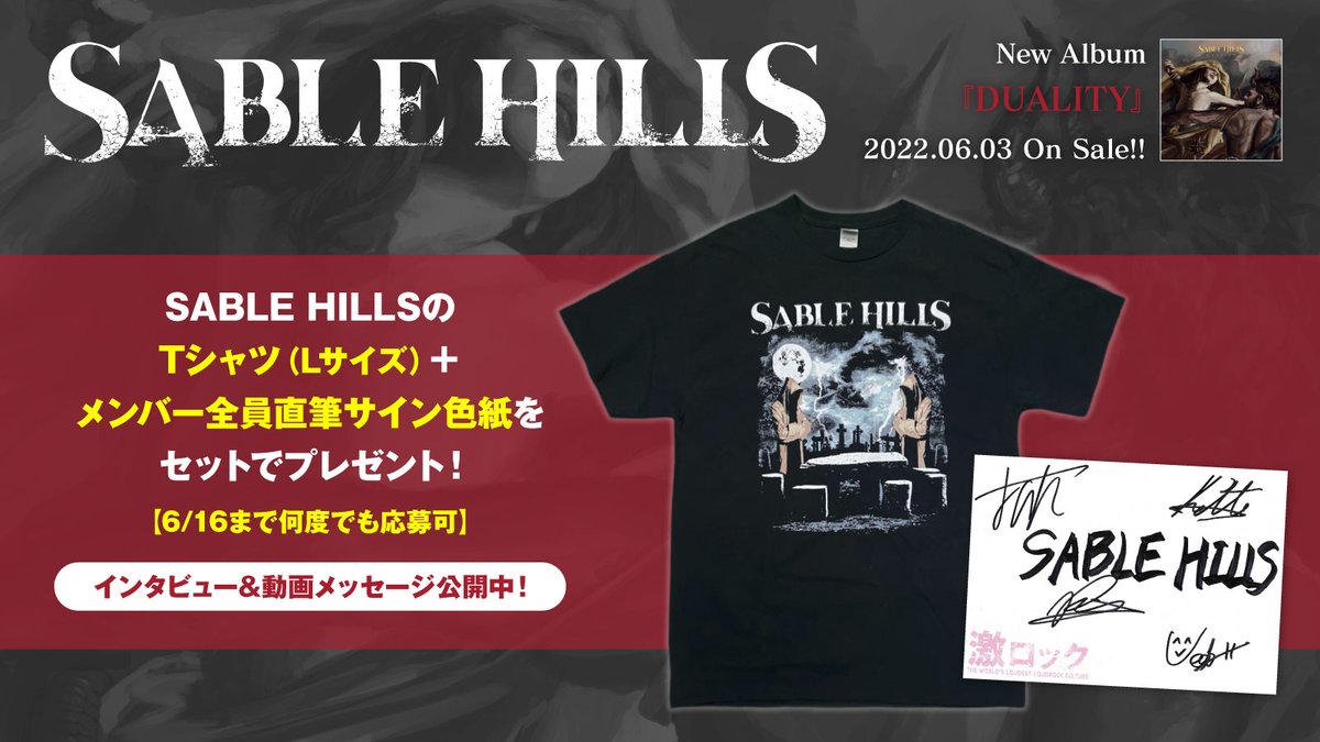 SABLE HILLSのTシャツ(Lサイズ)+メンバー全員直筆サイン色紙プレゼント!