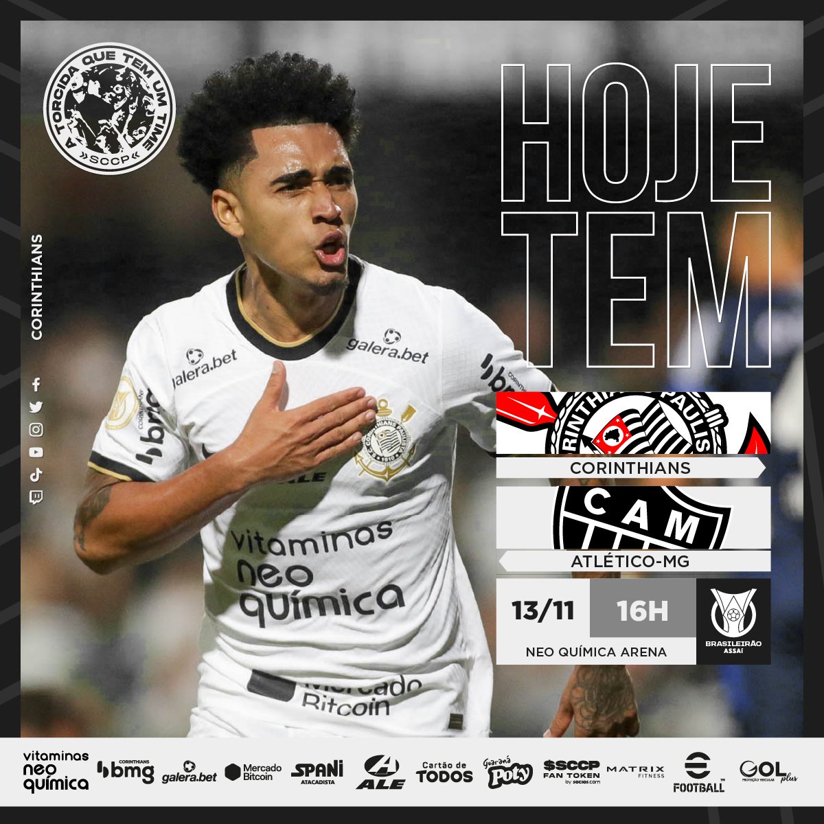 Hoje tem Corinthians pelo último jogo do Brasileirão 2022! ⚽