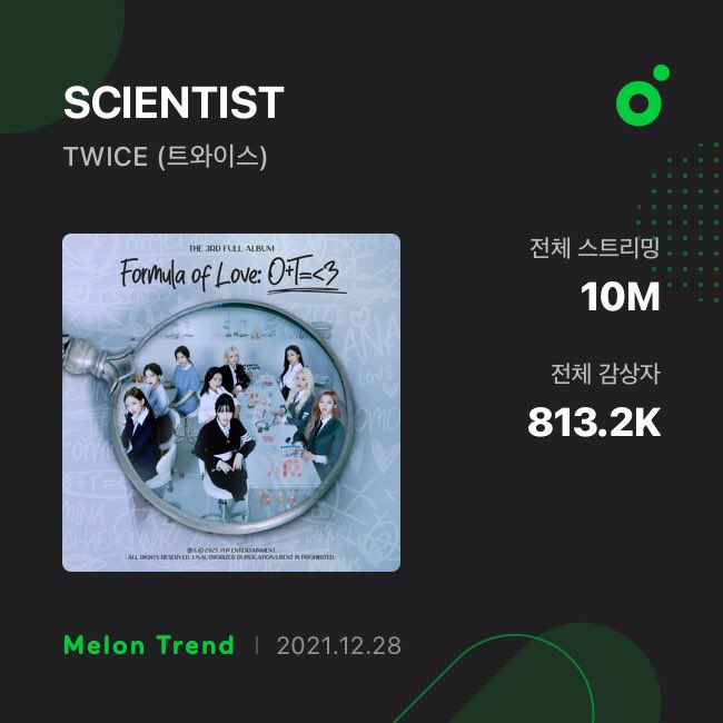 .@JYPETWICE "#SCIENTIST" has surpassed 10 MILLION streams on MelOn! 👏