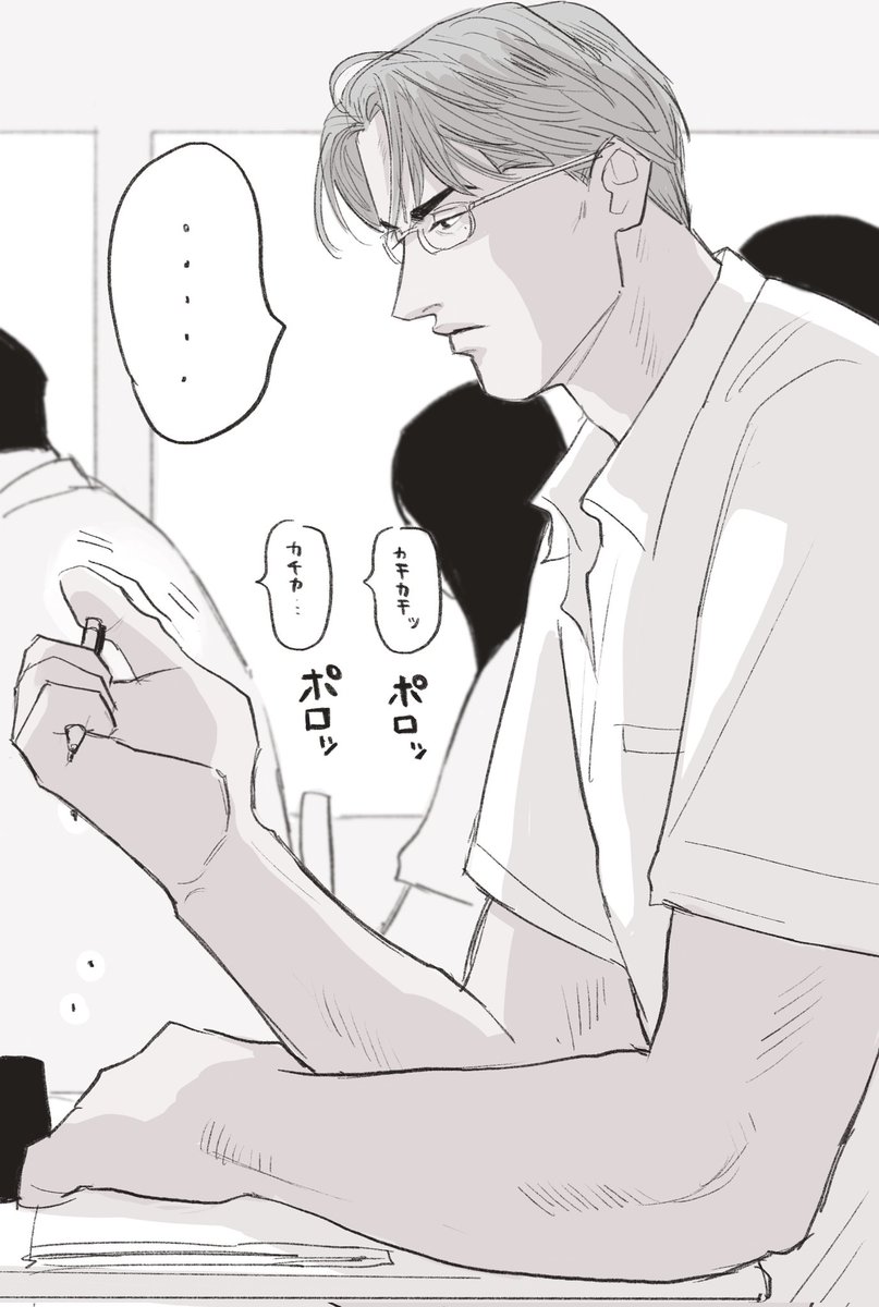 ふと見るとシャーペンの調子が悪いのか押しても押しても芯が折れるし、先っぽから芯入れてみたりするし、シャー芯に話しかけてるし