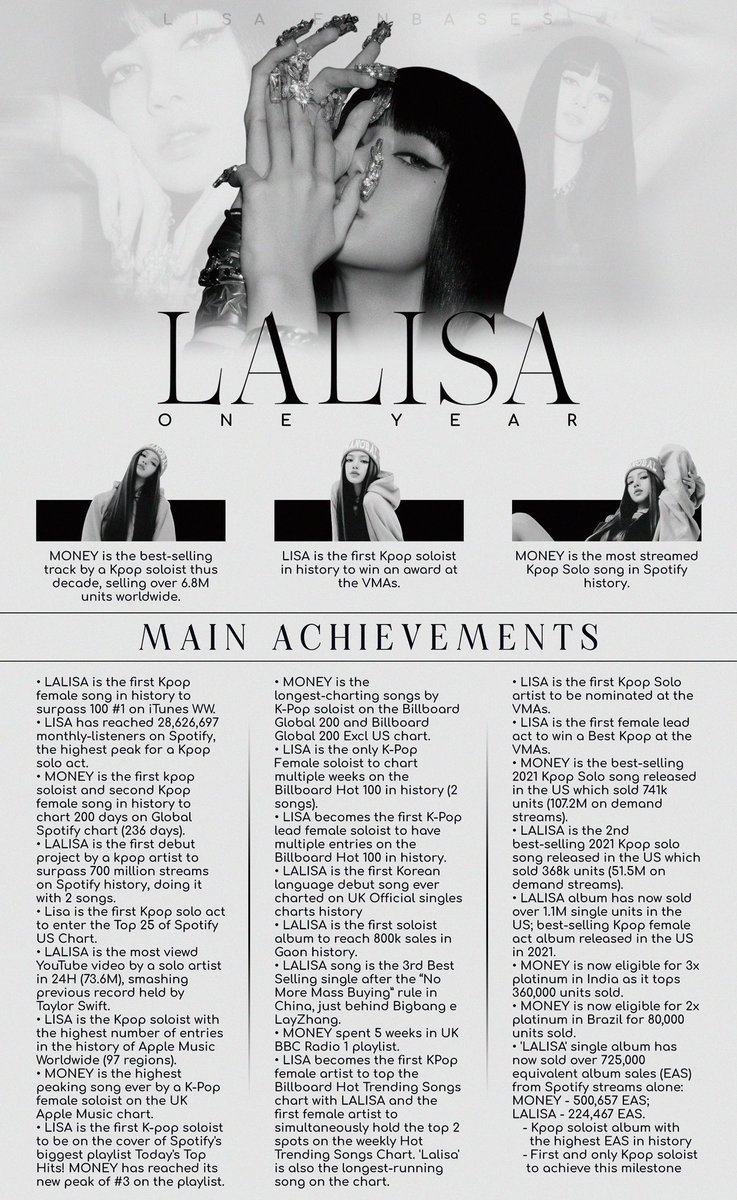 With only 2 solo songs, #LALISA and #MONEY and 1 collab song #SG, #LISA has proven to be not only one of the Best K-pop artists of all time but a household name in the world music industry with the impact and achievements she has achieved as a soloist. #HotTrendingSongs