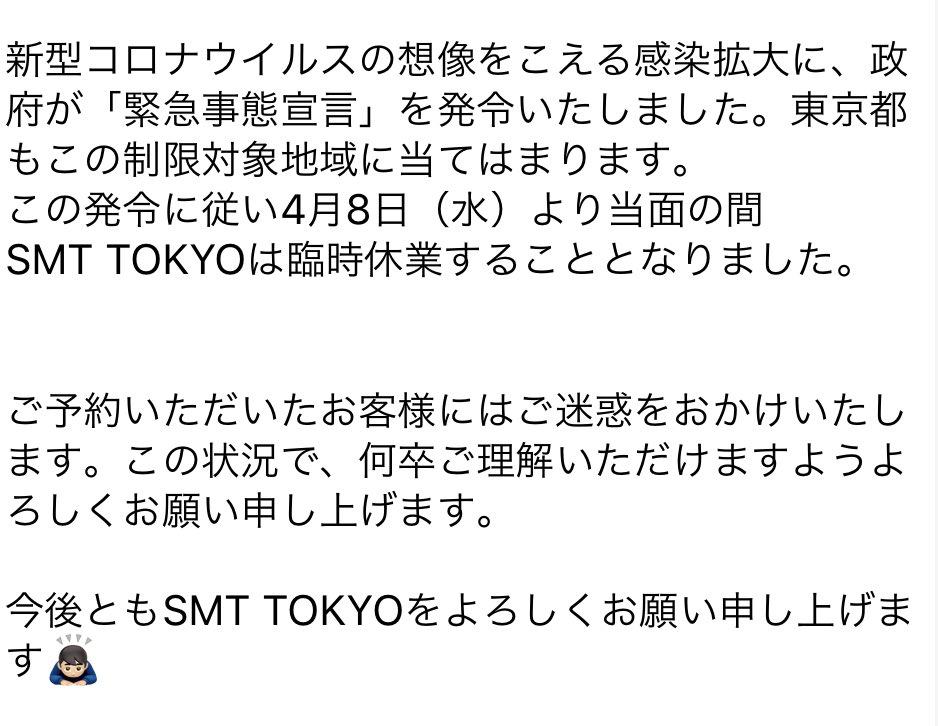 【SMTTOKYOから臨時休業のお知らせ🔔】