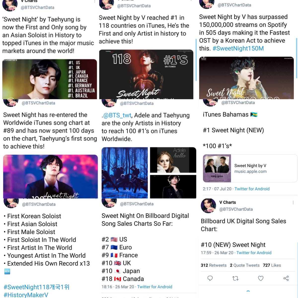 RECORD BREAKING SWEET NIGHT is still the #1 bestselling international song on 🇺🇸 Amazon. Taehyung's self-composed music has been atop the bestsellers charts for the past 6 days consecutively!