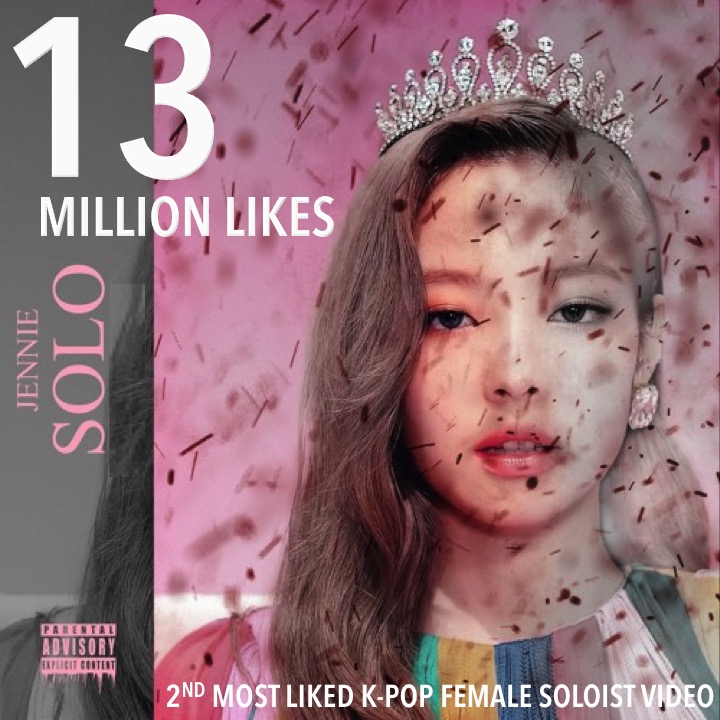 #SOLO by #BLACKPINK's #Jennie has now surpassed 13 MILLION likes on YouTube! She's is the 2nd K-Pop Female Soloist to achieve this feat!💪🥈🇰🇷👩🎤🎥💥1️⃣3️⃣Ⓜ️❤️🔥👑🖤💗 @BLACKPINK