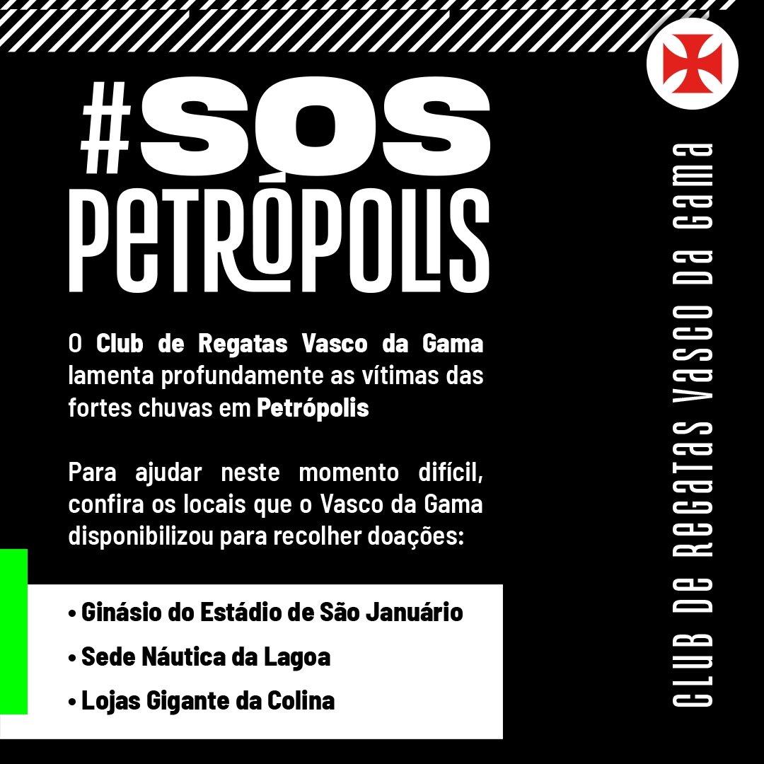 As camisas dos nossos 11 titulares no #VASxBAN serão leiloadas na próxima semana por meio do site playforacause.com.br, para ajudar as vítimas das fortes chuvas em Petrópolis. Confira mais informações em: bit.ly/35afddi #SOSPETRÓPOLIS 💢 #VascoDaGama